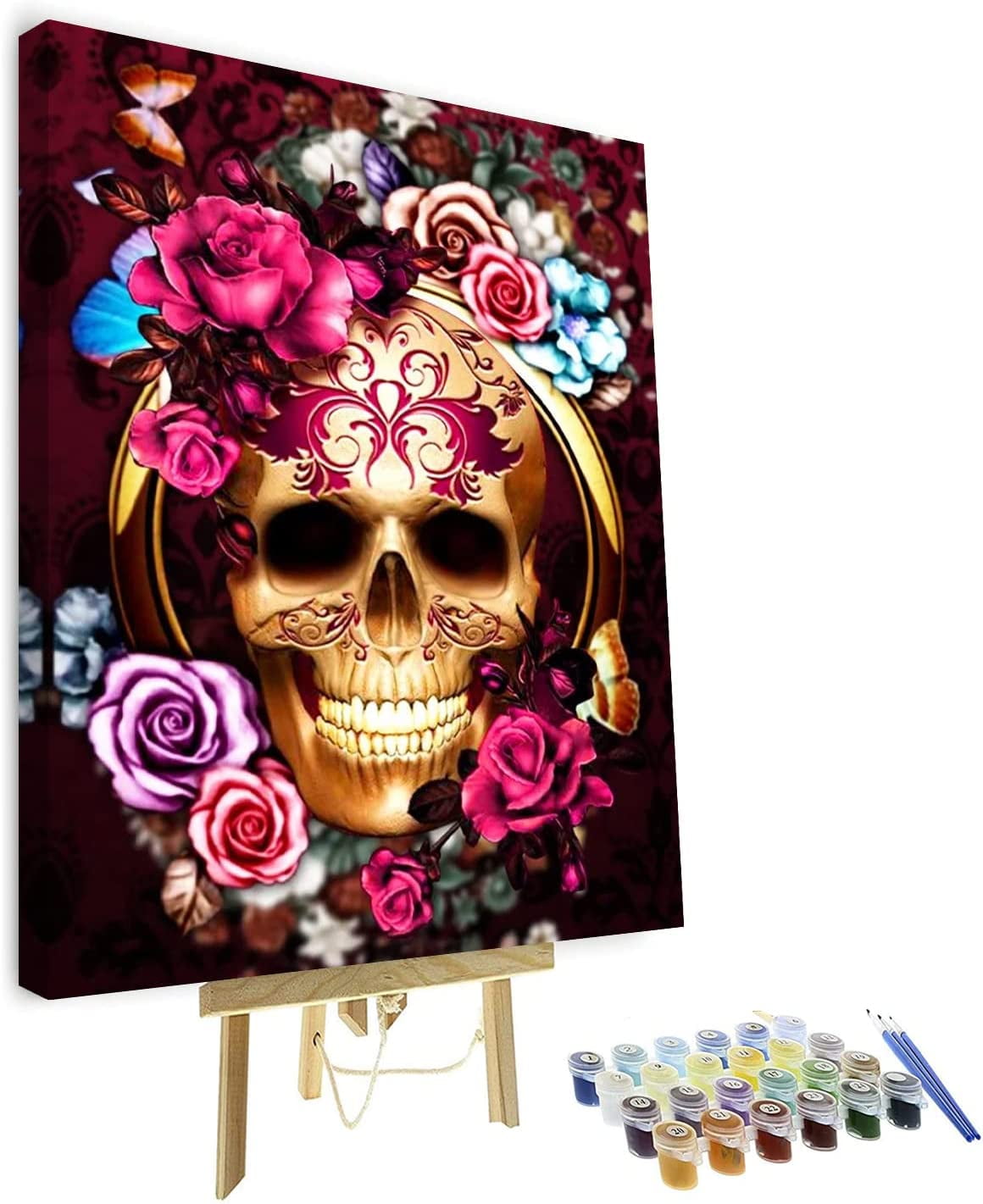 Framed Colorful Skull Paint By Numbers For Adults Beginner Kids Painting Diy Oil Painting Kit On Canvas With Paintbrushes Acrylic Pigment For Home Wall Decor 16 Inx20 In Walmart Com